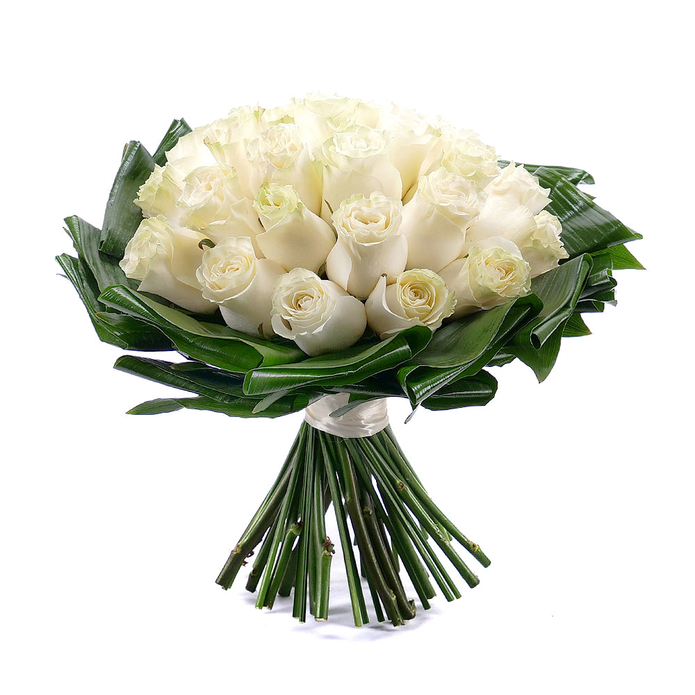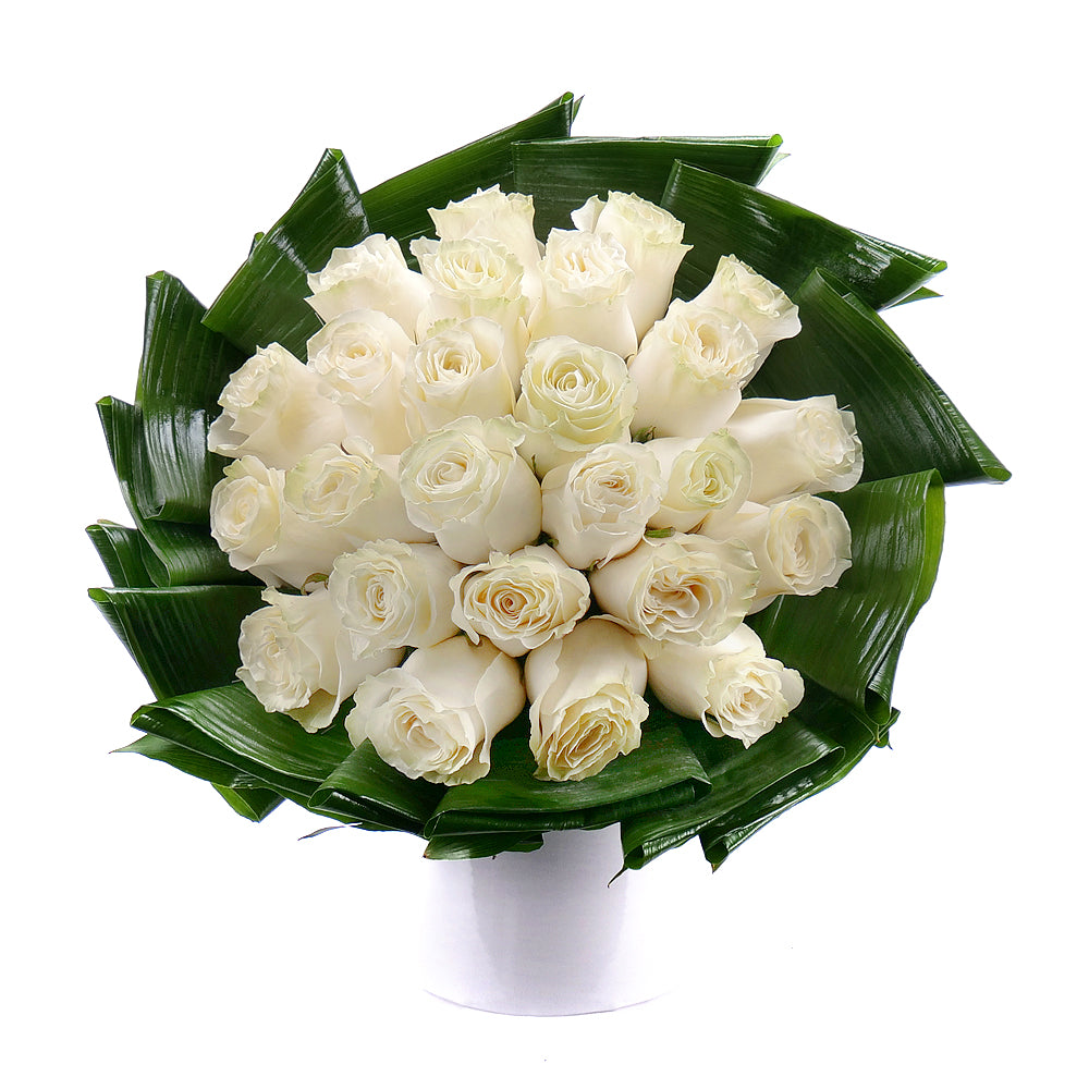 Elegantná okrúhla kytica z luxusných krémových ruží s dekoračnou zeleňou. Čítať viac