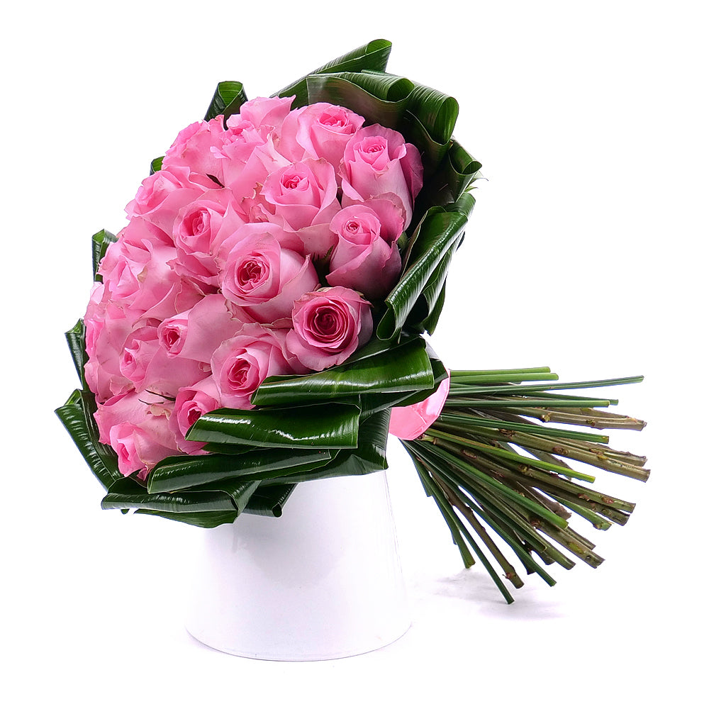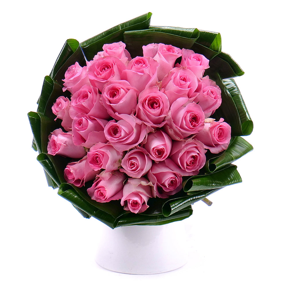 Elegantná okrúhla kytica aranžovaná z luxusných ružových ruží s dekoračnou zeleňou. Čítať viac