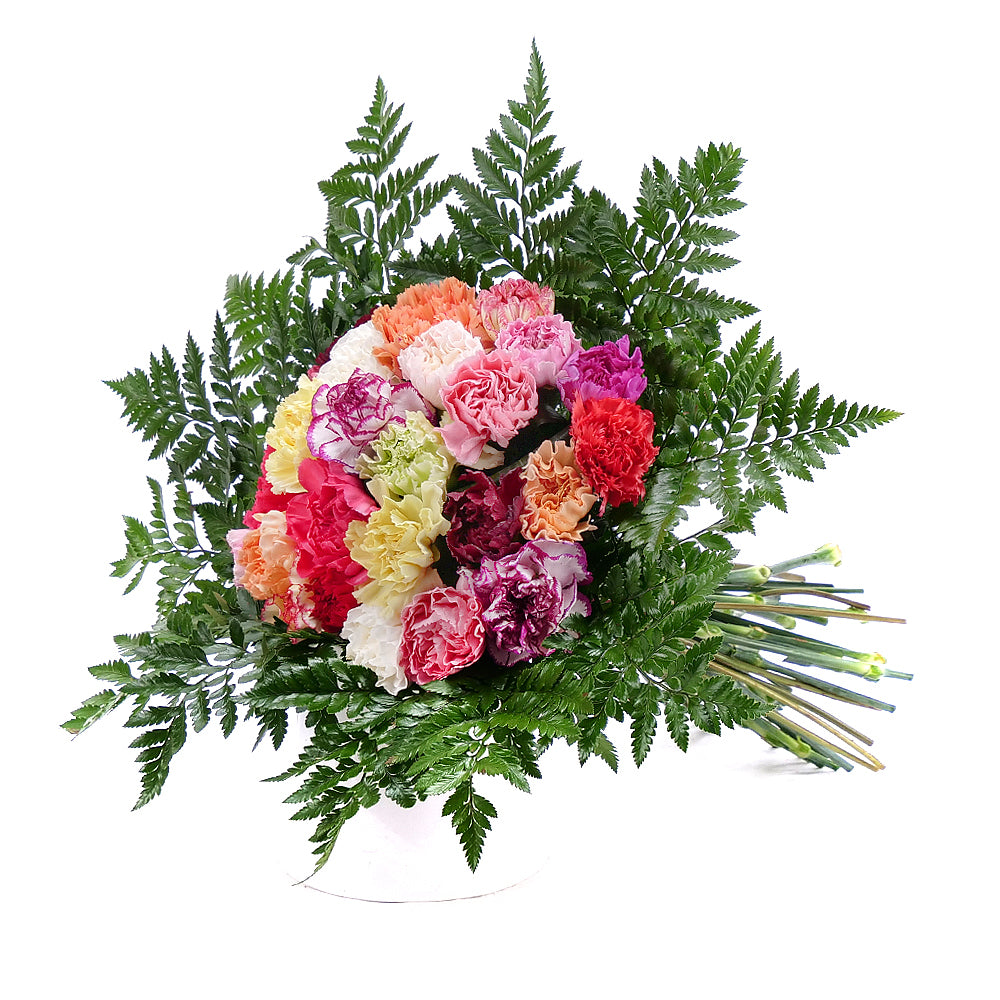 Kytica aranžovaná z farebných karafiátov vhodná na všetky príležitosti.