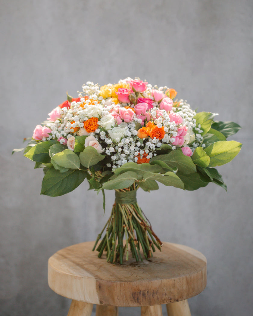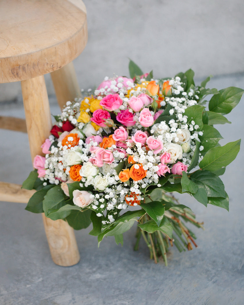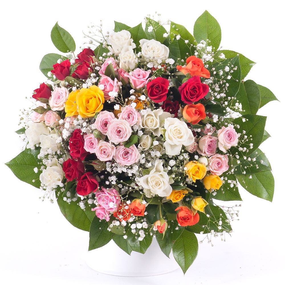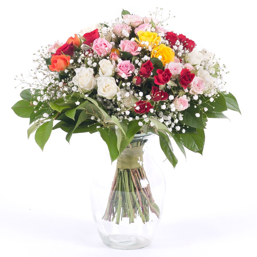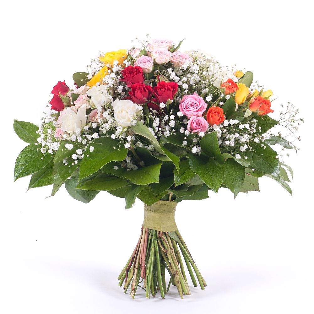 Rozeta je veselá, hravá letná kytica aranžovaná z rôznofarebných ruží podľa aktuálnej dostupnosti. Ideálny kvetinový darček pre všetky príležitosti. Počet kvetov v kytici je možné navýšiť.
