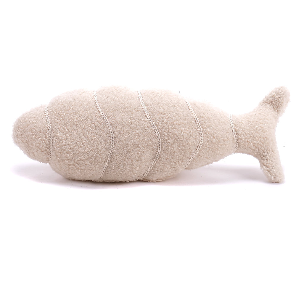 Dekoračná plyšová ryba krémovej farby.