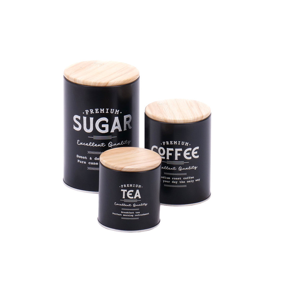 Sada plechových dóz s dreveným vrchnákom. Obsahuje 3 ks plechových dóz rôznej veľkosti na cukor, kávu a čaj. Čítať viac
