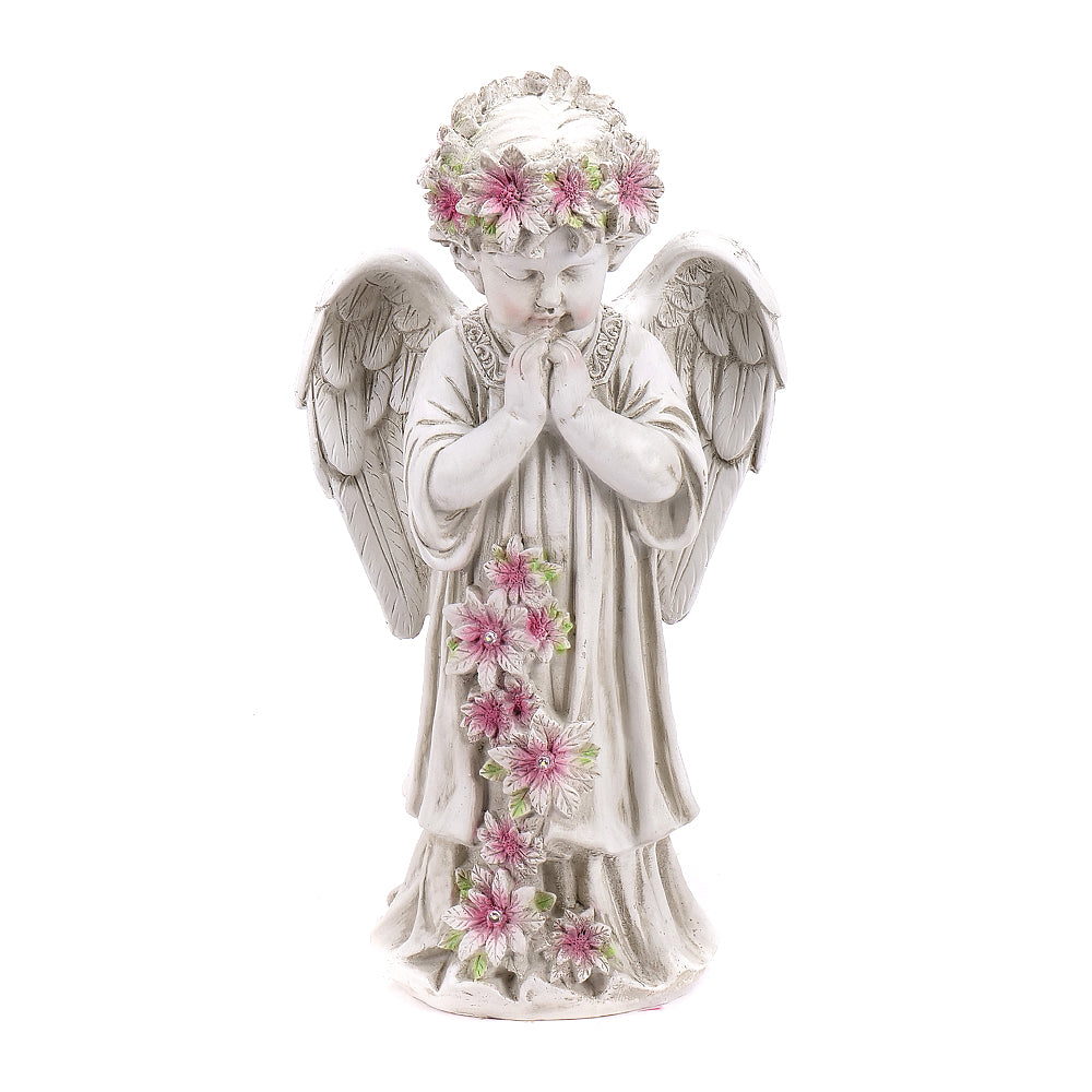 Socha anjela s farebnými kvetmi s LED osvetlením. Rozmery sochy sú: 22 cm x 15 cm x 41.5 cm. Čítať viac