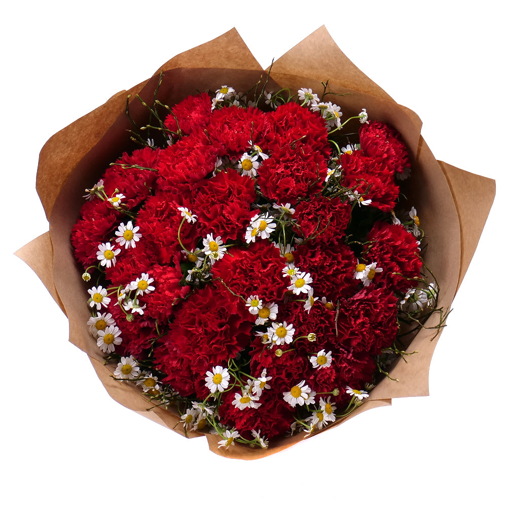 Sweet červené karafiáty s kamilkami