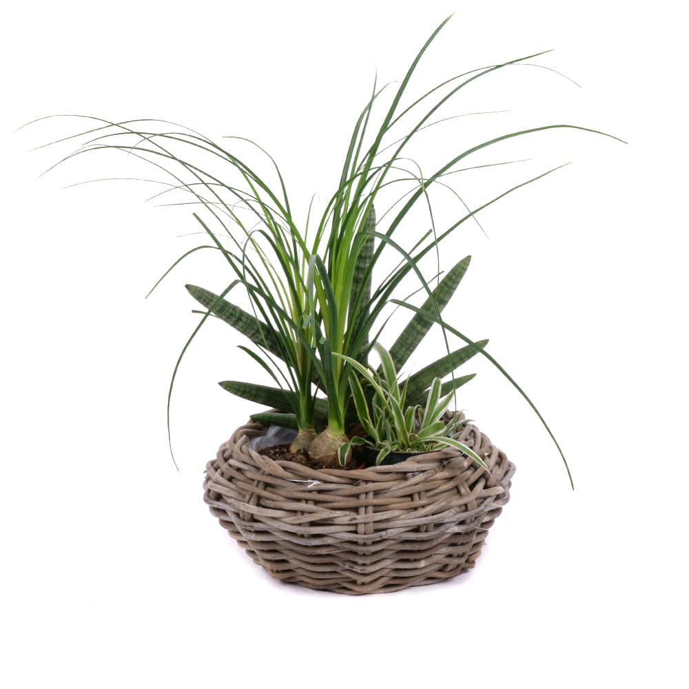 Darčekový set izbových rastlín v ratanovom obale, ktorý je odolný voči poveternostným podmienkam. Set je zložený z: Chlorophytum - svetlé miesto aj polotieň, zálievka po preschnutí pôdy, nenáročná rastlina na pestovanie. Nolina - má rada veľa svetla aj priame slnko, zálievka veľmi mierna, nemá rada preliatu pôdu. Sansevieria - svetlé miesto aj polotieň, minimálna zálievka extémne odolná. Čítať viac