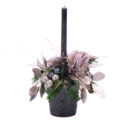 Vianočný aranžmán zo živej čačiny čierna sviečka